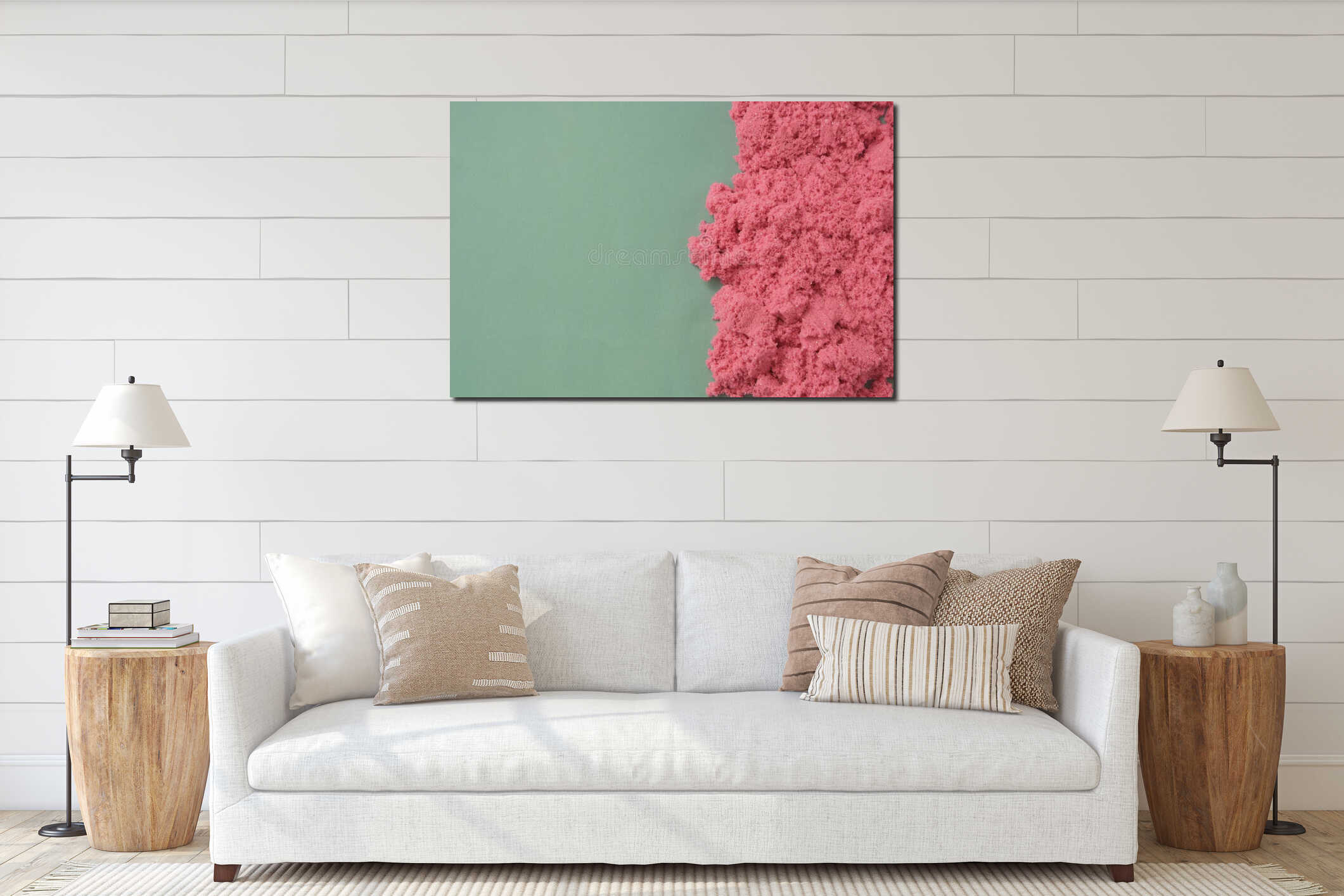 Abstract modern pink and green background with copy space. Pink kinetic sand. Education and parenting Canvas Print