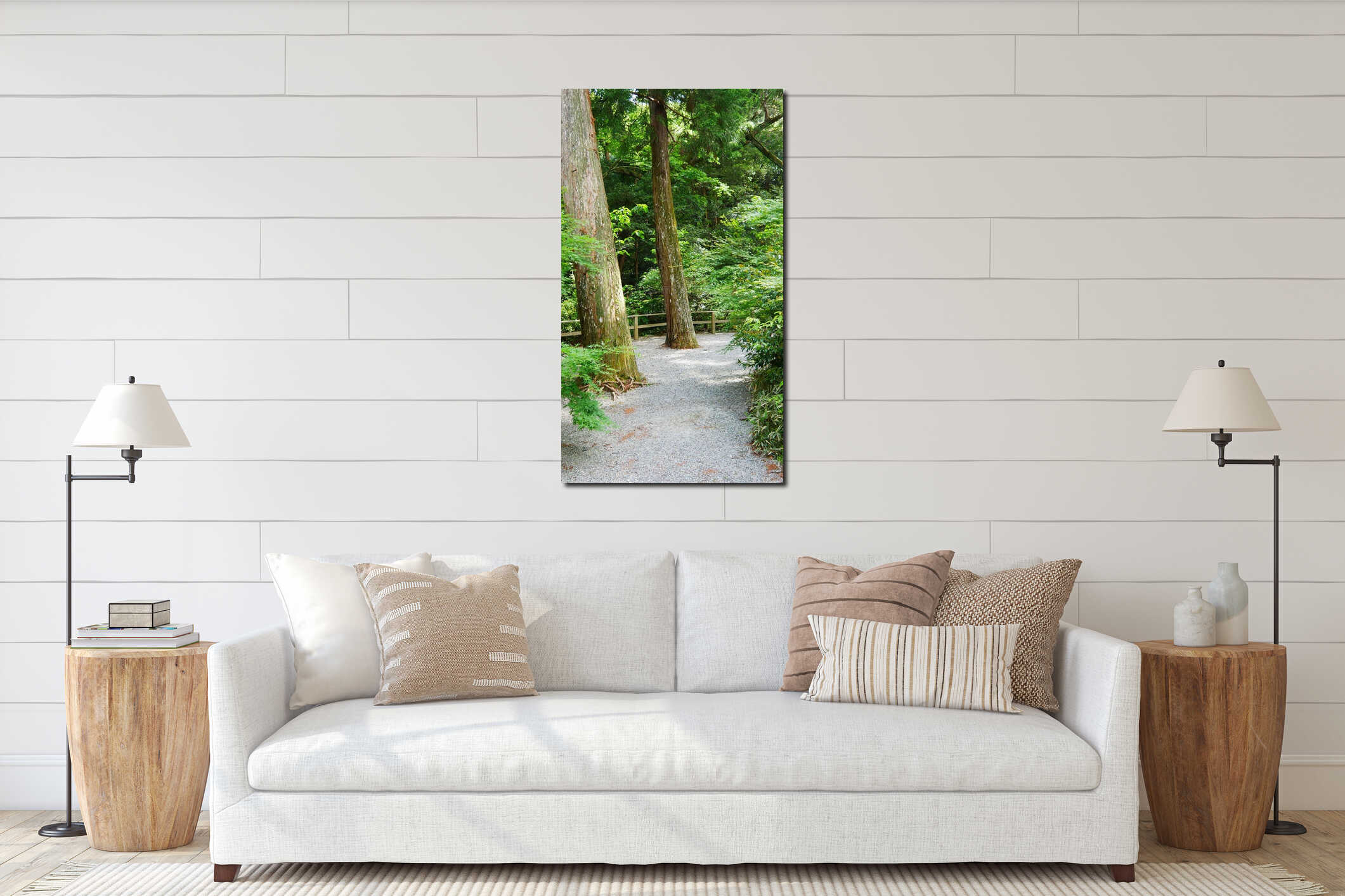 Tranquil Forest Pathway: A Sacred Walk Between Ancient Giants Canvas Print