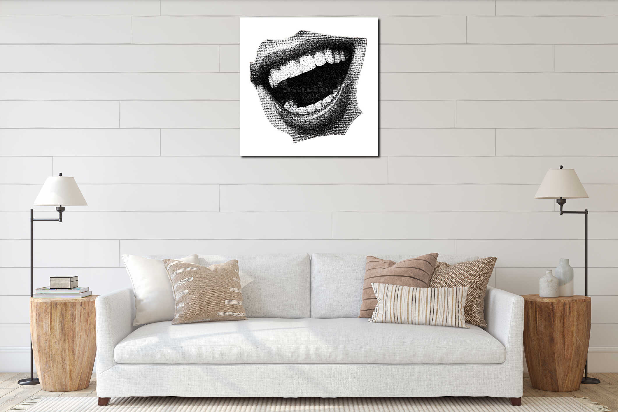 Vintage Laughing Mouth In Halftone. Retro Pop Expression Illustration Isolated On Transparent Background Canvas Print