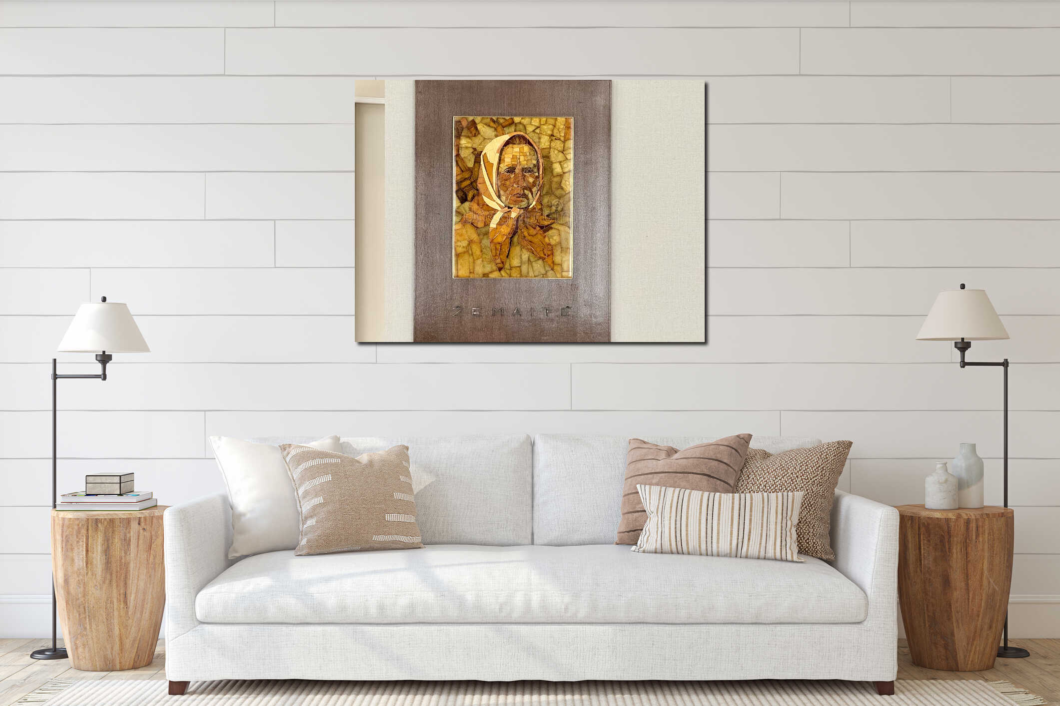 Julija Zemaite amber portrait in Amber Museum in Palanga. Canvas Print