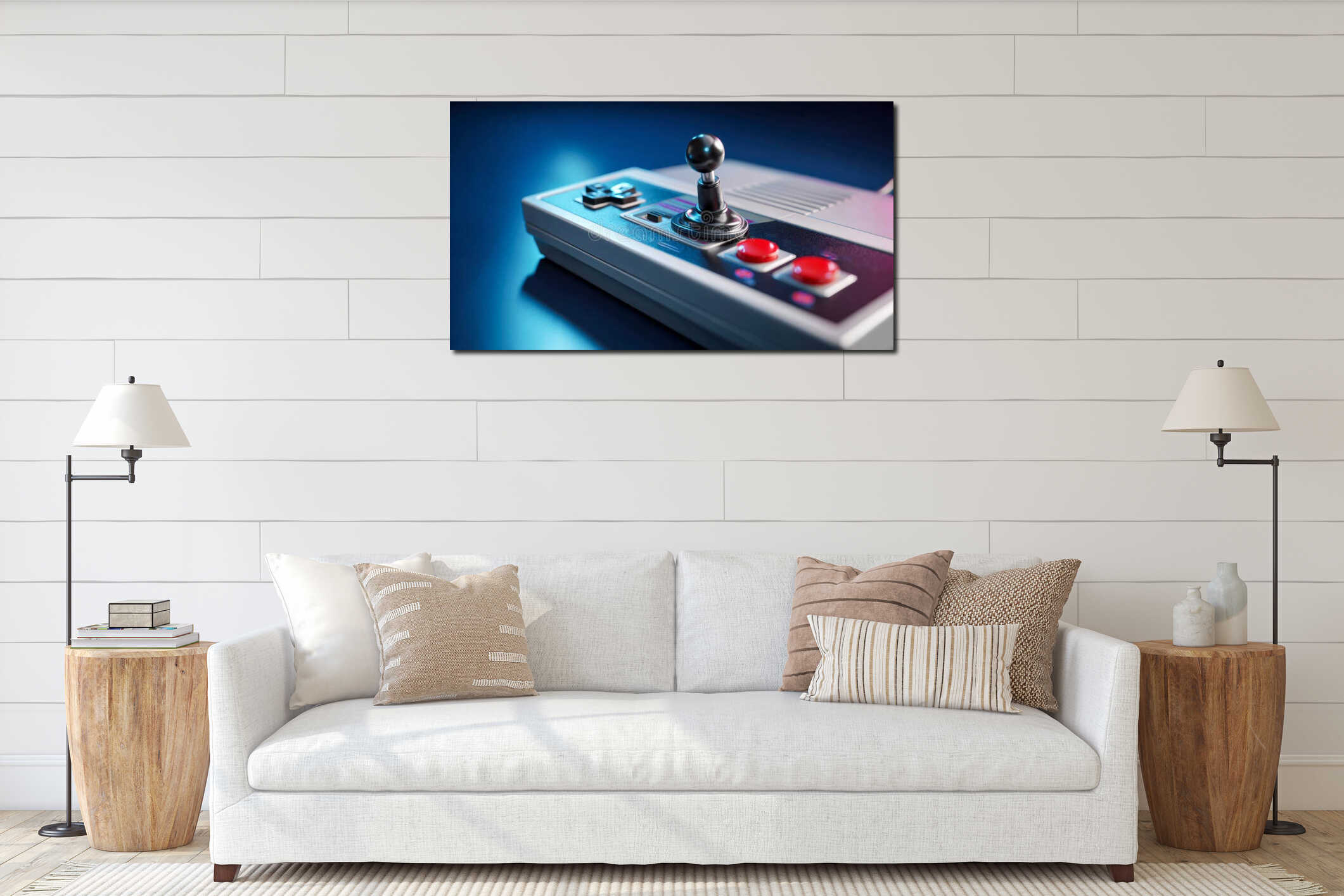 Vintage video game joystick controller with red buttons, symbol of retro gaming nostalgia Canvas Print