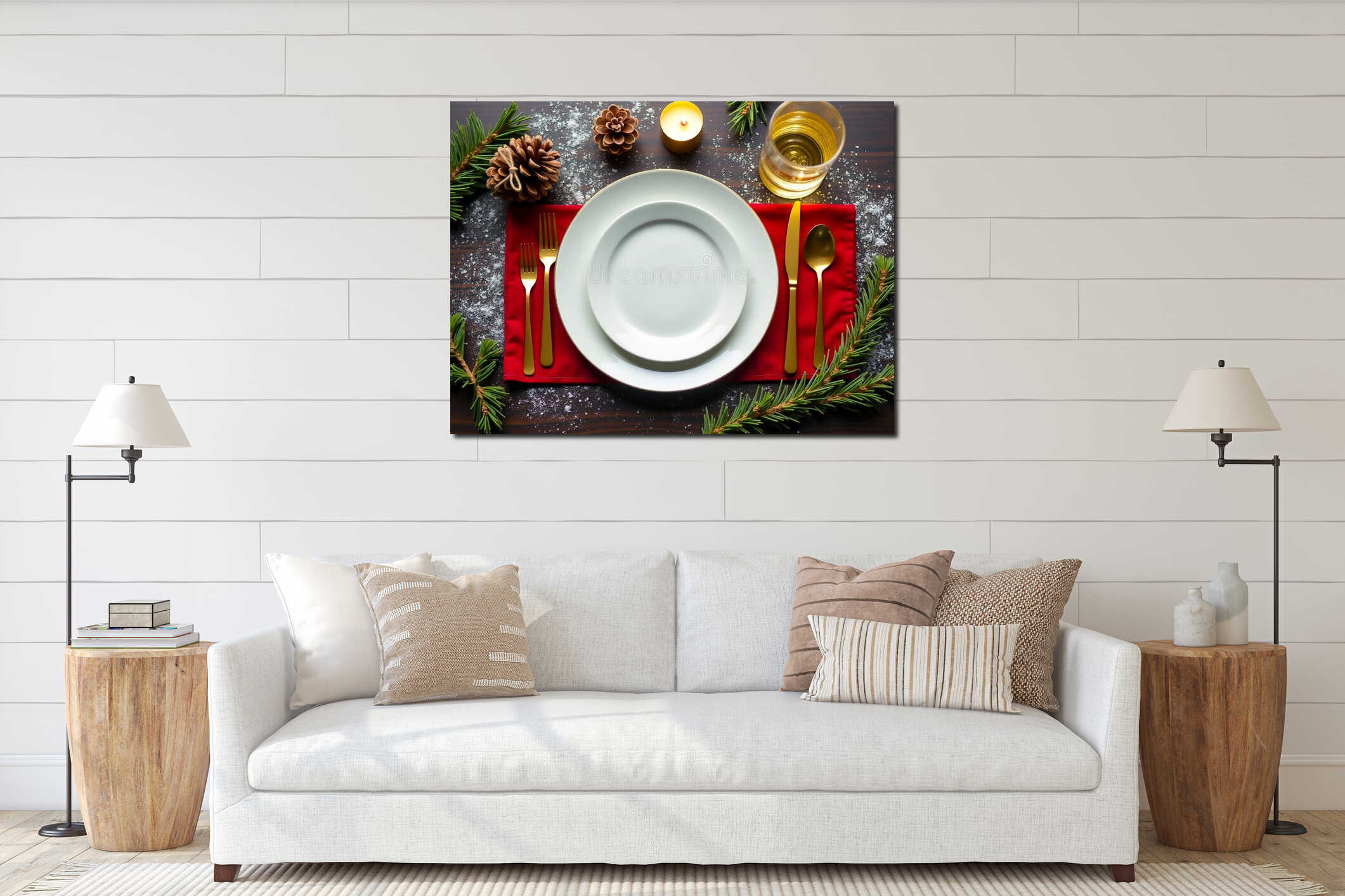 Elegant Christmas Table Setting with Gold Cutlery and Red Napkin Canvas Print