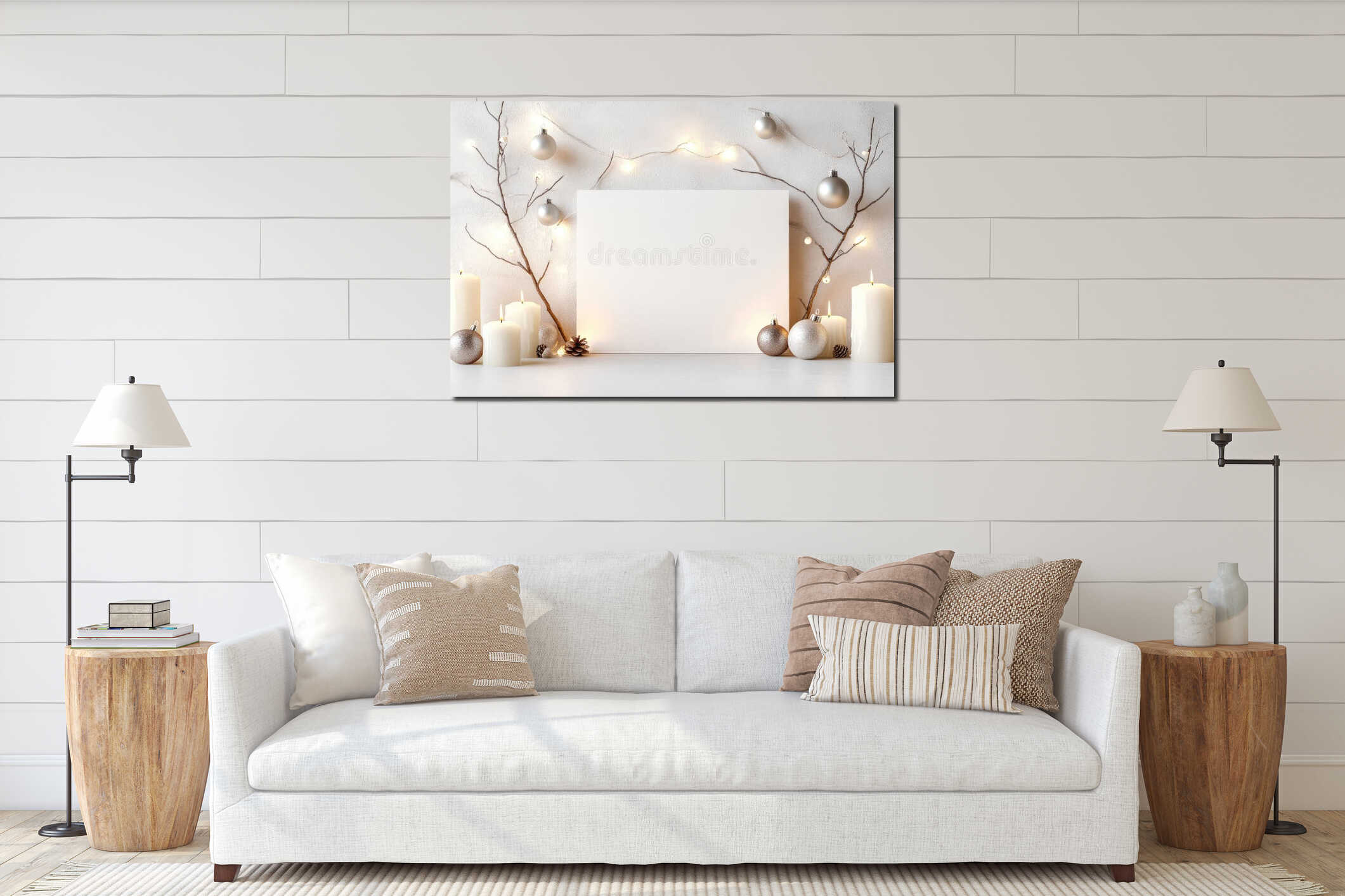 Elegant minimalist holiday scene with candles and gifts Canvas Print