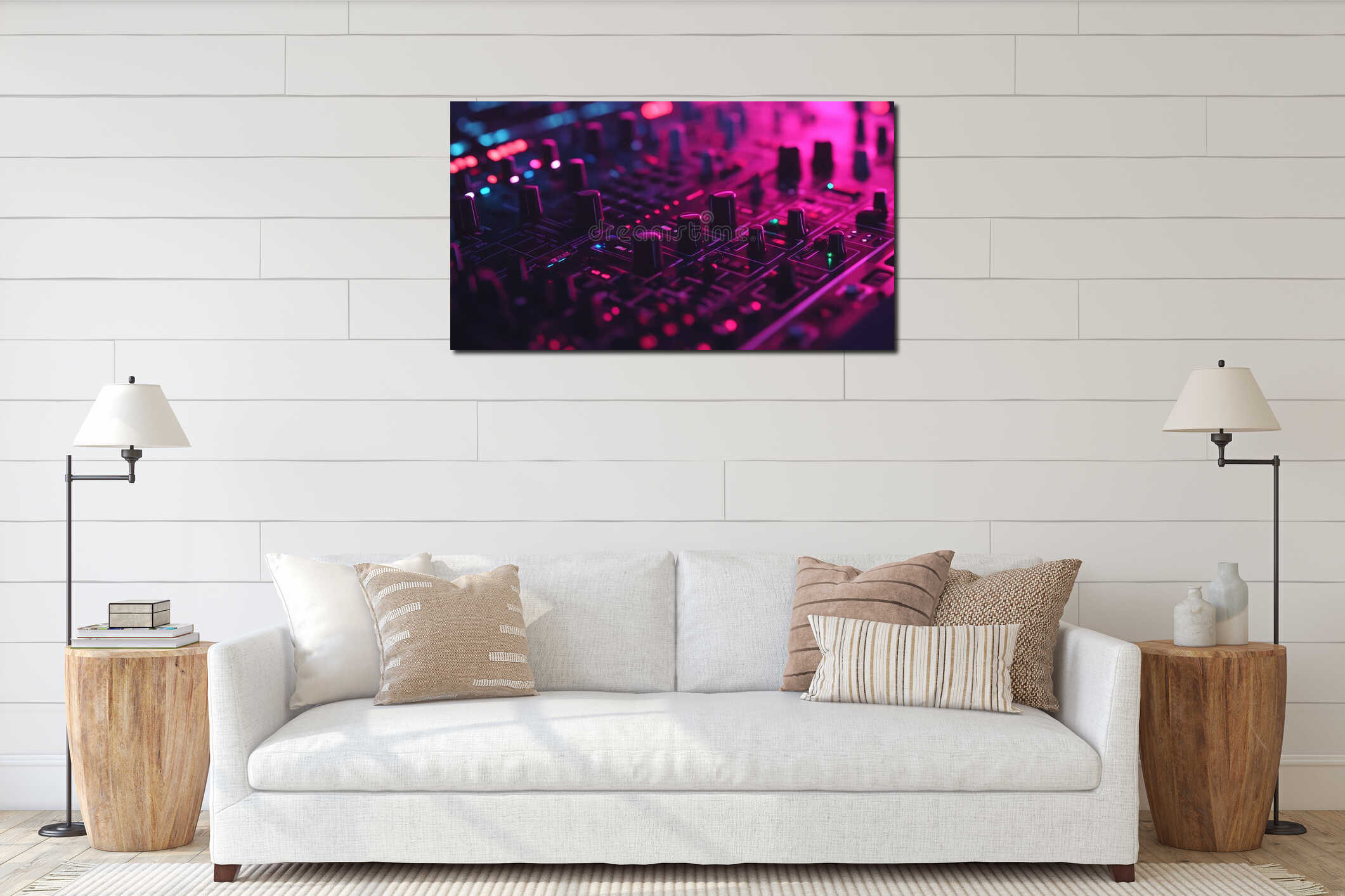 Dj audio mixer playing electronic music in nightclub Canvas Print