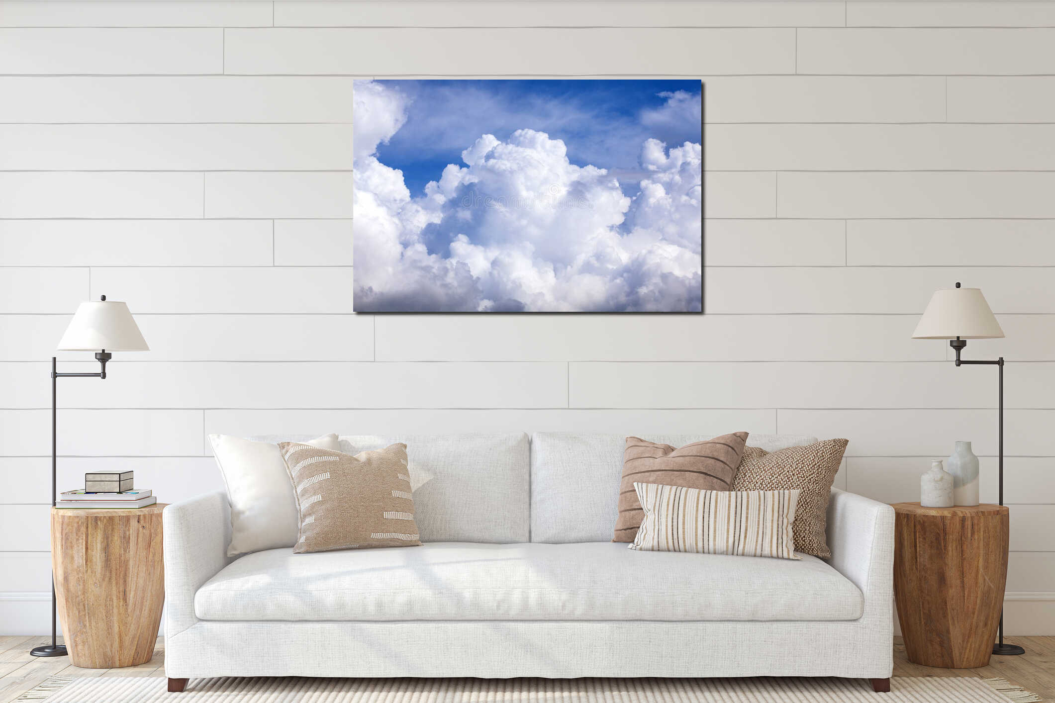 Puffy clouds blue sky Canvas Print